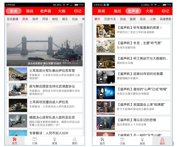 “环球资讯+APP”让电波飞进手机。这款瞄准移动互联网的APP致力于打造好听、好看、好玩、好用的新闻移动互联网产品,除了中国国际广播电台遍布全球的记者带来的音频、图文和多媒体新闻报道,还推出极具广播特性的“挑战”、“老声音”、“大卡”和“印记”等声音功能,让用户实时参与节目互动。