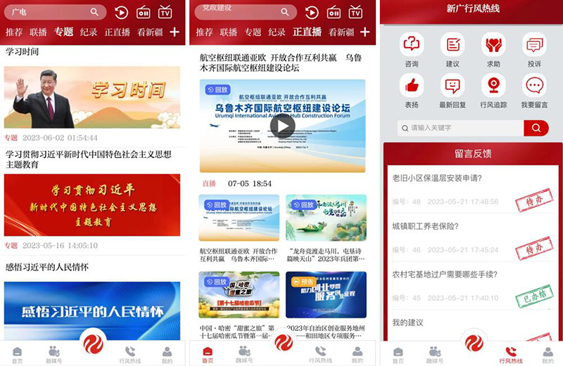 新疆广播电视台•融媒体平台实现了 “多媒体资源生产+资源管理及共享+多终端内容发布+多屏流媒体播出+移动互动客户端定制”一体化的融合媒体应用管理流程。包括移动客户端App、微信小程序、PC门户网站,实现了广播、电视、手机客户端、小程序等多渠道、多终端为一体的全媒体宣传格局。