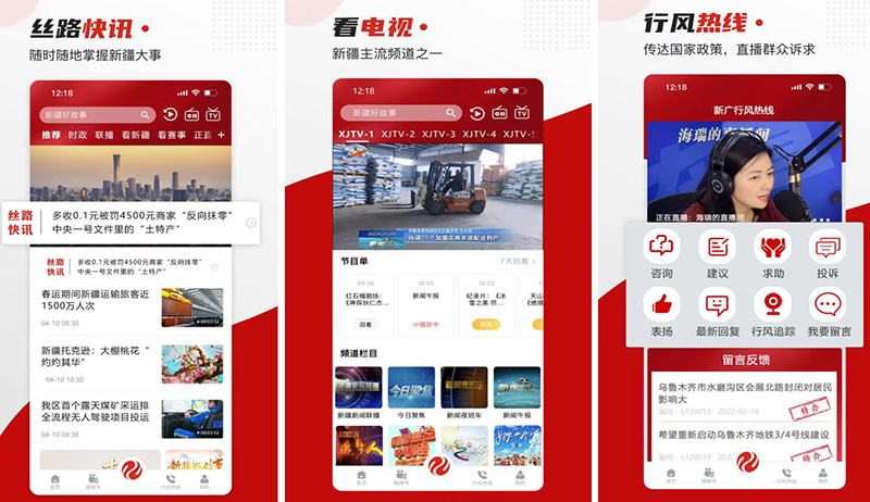 平台内容覆盖新疆地区新闻、丝路快讯、直播民生、专题、刷视频、听广播、看电视、互动直播、纪录片、融媒号、行风热线等栏目, 包含文字、图片、视音频点播、视音频直播等多种数据类型,为全球用户提供24小时不间断的高品质节目内容。