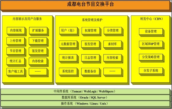 根据用户的需求,yp街机·电子游戏(中国)官方网站 节目交换平台以集中式部署构架为主,同时支持向分布式部署的扩展。根据成都电台需求情况平台实现的总体架构设计如下: