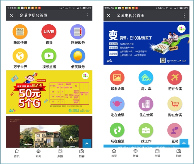北京yp街机·电子游戏(中国)官方网站 信息技术有限公司联手抚州移动建设金溪广播电视台手机客户端和手机微网站。实现了金溪电视台视频直播、视频点播、新闻快讯发布以及违章查询、金溪公交、水费查询、天气查询等便民服务应用。支持拍客功能,互联网用户可实时通过手机上传身边新闻,实现新闻线索的海量汇聚。