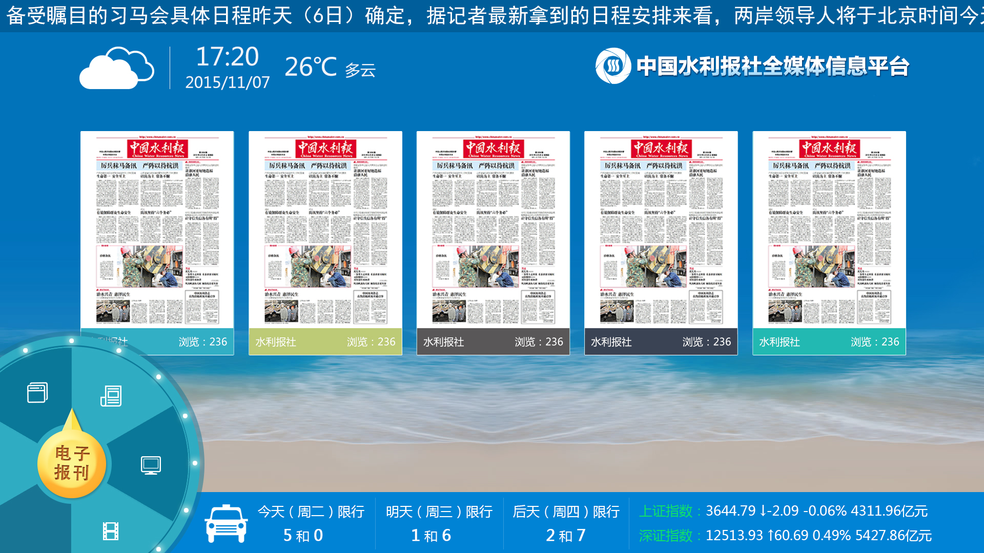 中国水利报社多屏业务平台利用中国水利报社图文、视频等资源,整合其他媒体、网友上传等各类图片、文字、音视频内容,将丰富多彩的内容通过多种网络传播渠道和展现方式,面向多个网络终端设备(手机、PC、IPTV、互联电视、户外大屏、智能终端等)进行传播和展现,构建网络文化媒体平台,打造“智慧水利”的全媒体业务平台。更为重要的是,在平台建设中注入技术+运营的新媒体发展理念,立足于水利行业特点,打造“水利微视频”网络电视等平台。