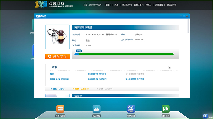 平台可满足行业14万从业人员的在线学习需求,并可根据不同的学习需求定制不同的学习套餐,支持基础课程、精品课程、选修课程等、课程套餐等多种课程学习模式,运营模式支持线下购买学习卡、账户充值或线支付等方式进行课程购买学习,并可记录课程概况、学习进度、上次学习时间等个人学习信息,学习完成后可参加在线考试,以确保自己的学习效率及学习质量。有效实现了注册、登录、试听、购买、记录、活动报名、点播学习、在线模考、统计分析等全部培训环节的网络化、流程化及统一化,建立起结构完整、功能完备,界面友好的远程培训平台和运转高效的维护体系。