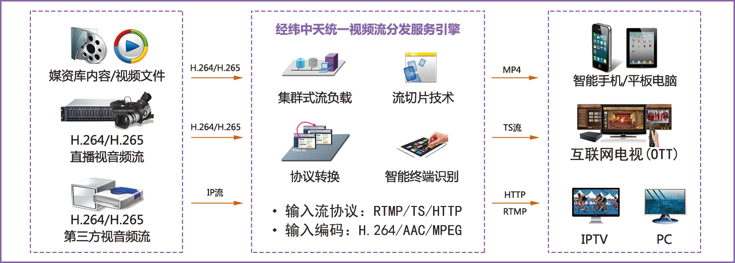 yp街机·电子游戏(中国)官方网站 IP流多屏分发服务系统集视频流协议转换封装、视频切片等技术一体、支持将H.264/H.265编码的网络IP流或媒体文件统一转换成适合不同类型终端播所需的不同协议、不同码流和不同封装格式的输出流,既可实现对IP流与节目源的传统播基带SDI输(播)出。系统具有可视化WEB监控管理界面以及高效的缓存、切片技术、可支持多屏时移、节目回放、播放片段预览、视频浮动窗口播放等应用功能、支持多级节点级联和流服务集群管理、支持百万级以上大规模并发扩展需求。