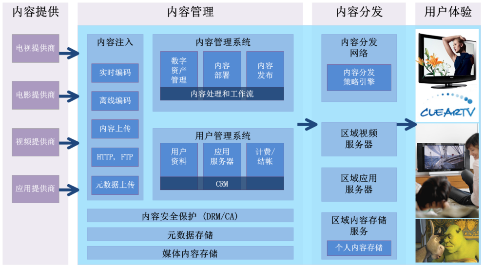 yp街机·电子游戏(中国)官方网站 IPTV系统架构为模块化设计,可支持16路卫星电视节目直播;高标清节目电视点播。该系统是基于行业标准的、在IP网络上传送视频及其他信息内容的平台,包括编码服务器,流媒体服务器,EPG发布服务器,IPTV中间件,内容分发网络,终端机顶盒的端到端解决方案。允许业务提供商更快速有效的集成、实施和管理高质量的视频业务,分发到用户端给用户带来全新的业务体验。用户界面提供了用户所有可用的内容和详细信息,更好的支持用户来挑选其感兴趣的内容进行观看,并且支持点播、暂停、重放以及快进等功能操作,用户可以随时随地的进行观看直播电视和点播视频内容,以及体验其他电视业务。